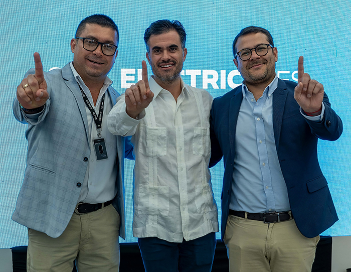 Pie de foto (de izquierda a derecha):  Luis Aveiga, Jefe de Ventas Manta; Simón Pérez, Gerente General de Andor Corp; y Rodrigo Montoya, Gerente Comercial de Andor Corp durante la apertura del nuevo concesionario en Manta.