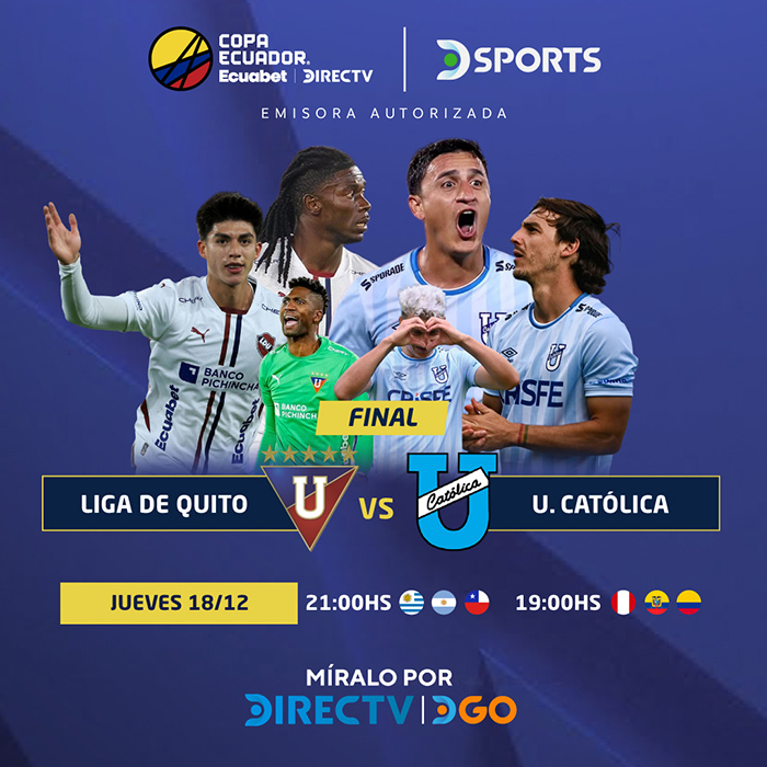 La definición será el próximo jueves 18 de diciembre, a partir de las 19, en el Estadio Olímpico Atagualpa. DSPORTS, disponible en el servicio de televisión satelital y la plataforma de streaming DGO, transmitirá el partido y ofrecerá una programación especial el día de la definición.