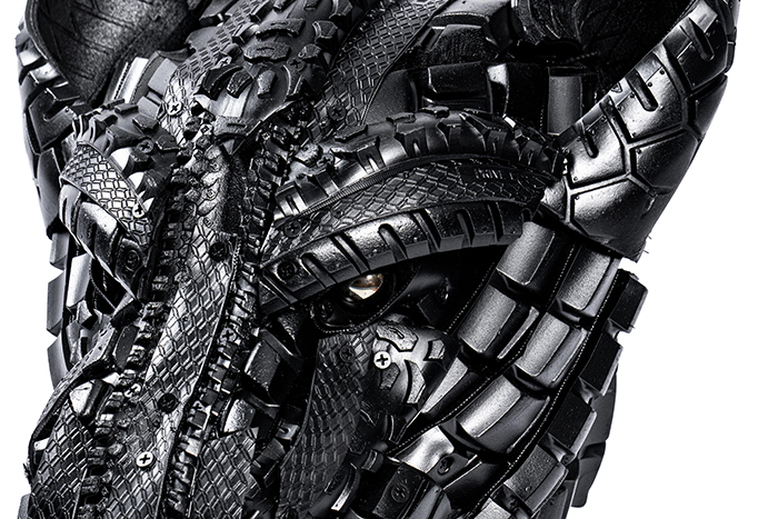 La exposición reúne a 22 creadores ecuatorianos, entre pintores y escultores, que aceptaron el desafío de trabajar con caucho reciclado.