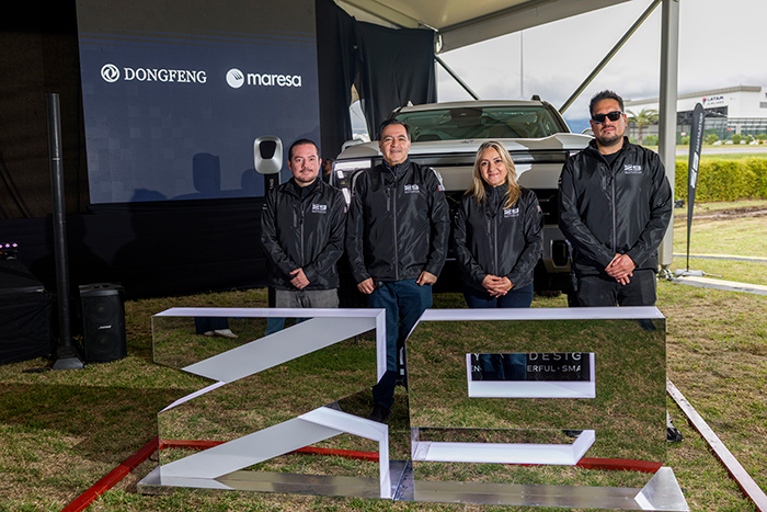 De izquierda a derecha: Alberto Reza Jefe de Producto de DongFeng, Santiago Castro CEO Corporación Maresa, Tatiana Flores Gerente de la Unidad de Negocio DongFeng, Andrés Armendáriz, Gerente de Marketing de DongFeng