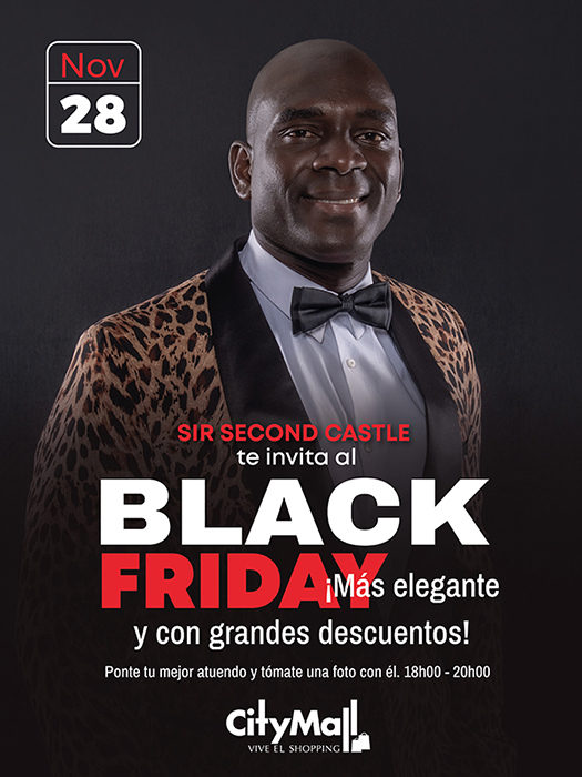 En el marco de la llegada del tan esperado Black Friday, CityMall ha preparado una jornada especial de compras y diversión, este viernes 28 de noviembre, desde las 18h00 hasta las 20h00, en el que el centro comercial se vestirá de gala para recibir al carismático Segundo Castillo, también llamado “Sir Second Castle”, quien llenará de estilo y elegancia esta jornada de increíbles descuentos.