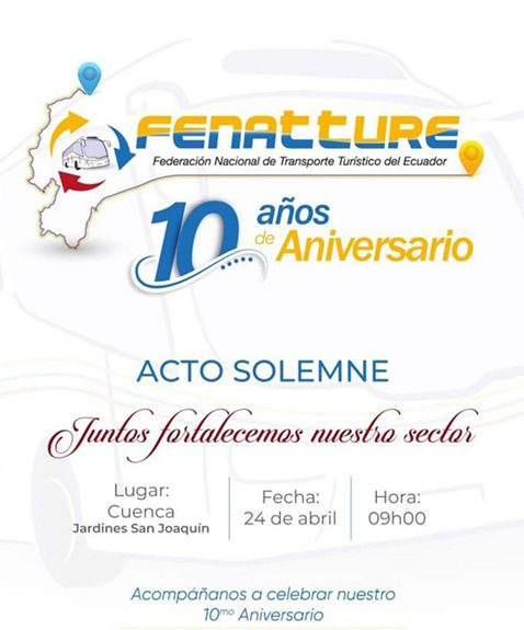 El sector de la transportación turística del Ecuador se dará cita en la ciudad de Cuenca para conmemorar el décimo aniversario de vida institucional, en un evento que reunirá a autoridades, actores del sector público, aliados estratégicos y representantes del gremio a nivel nacional.