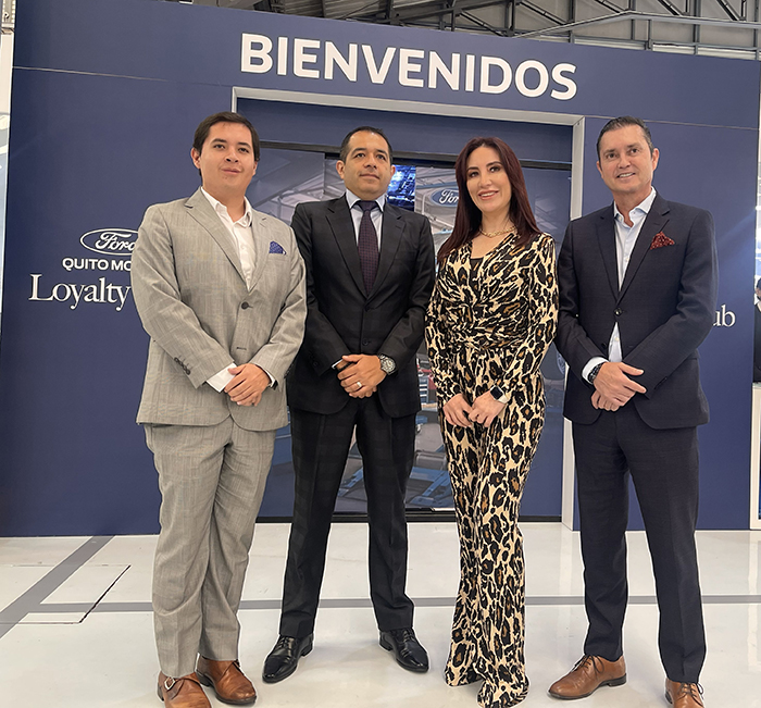 De izquierda a derecha: Joshua Faican, analista de marketing de Ford Quito Motors; Juan Manuel Méndez, gerente posventa de Ford Quito Motors; Melany Aguirre, gerente comercial y de marketing de Ford Quito Motors y Fernando Muñoz, Gerente General de Ford Quito Motors