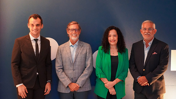 Foto de izquierda a derecha: Alejandro Salazar, Gerente General Geocycle Ecuador; Luis Alberto Salvador, Vicepresidente Ejecutivo Cámara de Industrias de Guayaquil, Dolores Prado, CEO Holcim Ecuador y Jaime Seminario, Presidente Alterno Cámara de Industrias de Guayaquil.