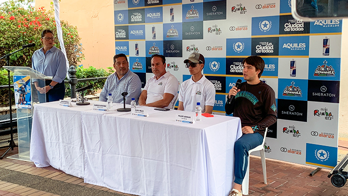 Carlos Morán (director de Deportes Municipio de Guayaquil), Fabricio Sánchez (organizador Down Hill del Cerro), Elihu Vélez (director de Pista), y Felipe Vargas (Corredor).