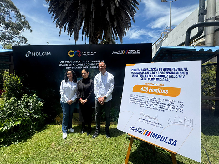 ● Holcim Ecuador y Cervecería Nacional consolidan su alianza “Simbiosis”, con una vigencia de cinco años, para reutilizar más de 6.400 m³ de agua tratada y convertirla en concreto sostenible.