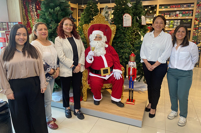 Ana Cristina Burgos, Jefe de Unidad de Negocios Infantil y útiles; Karina Veliz, Jefe de Unidad de Negocios Navidad y Hogar; Diana Drew, Coordinadora de Marketing; Papa Noel; Carola León, Gerente de Compras; Adriana Sáenz, Diseñadora de productos.