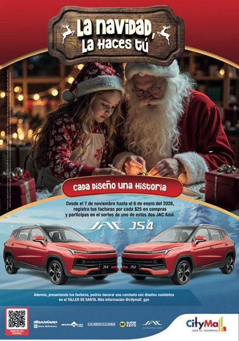 Como parte de esta festividad los visitantes que registren sus facturas por cada $25 en compras, realizadas entre el 7 de noviembre de 2025 y el 6 de enero de 2026, participarán en el sorteo de dos vehículos JAC Azul JS4, un premio en agradecimiento a la preferencia y fidelidad de quienes hacen de CityMall su punto de encuentro favorito.