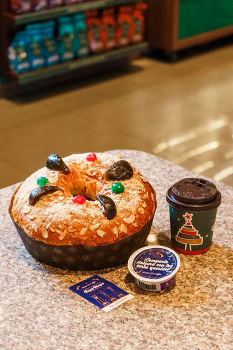 La Rosca de Reyes de Sweet & Coffee® está elaborada con un suave relleno de dulce de leche, gotas de chocolate y nueces. Decorada con trozos de higos, cerezas y almendras fileteadas; convirtiéndose en la opción ideal para compartir en familia y revivir la magia de esta celebración.