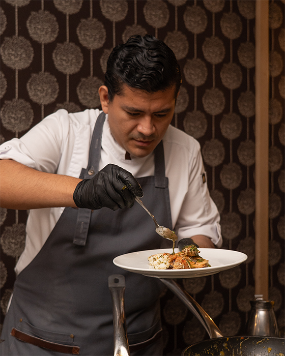 La propuesta gastronómica está liderada por el chef Miguel Alvarado, quien imprime su visión centrada en el respeto por el producto y la exaltación de sus cualidades naturales.