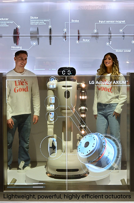 La zona también presenta LG Actuator AXIUM™, una nueva marca de actuadores robóticos dirigida al mercado de la robótica, en rápido crecimiento. Estos actuadores combinan motores, accionamientos y reductores en módulos compactos que funcionan como articulaciones robóticas.