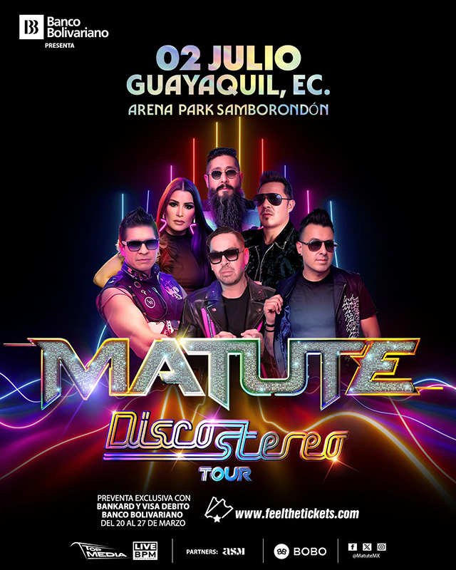 Ecuador se prepara para vivir una experiencia inolvidable con MATUTE, la reconocida banda mexicana que traerá al país su espectacular homenaje a la música de los años 80. La agrupación se presentará el jueves 02 de julio en Arena Park, en la ciudad de Guayaquil, y el sábado 04 de julio en el Arena Top Media, en Quito donde el público podrá disfrutar de un espectáculo lleno de energía, nostalgia y los grandes éxitos del pop y rock de la década de los 80.