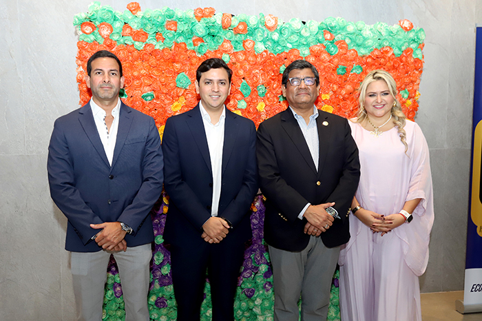 Roger Crespo, Subsecretario de Mipymes y Artesanías (MPCEI); Javier Salazar, Sales Director SMBs de Jelou; Luis Alberto Jaramillo, Ministro de Producción, Comercio Exterior e Inversiones; María José Muñoz, Directora de Emprendimiento e Innovación Empresarial, participaron el evento Pymes Guayaquil.