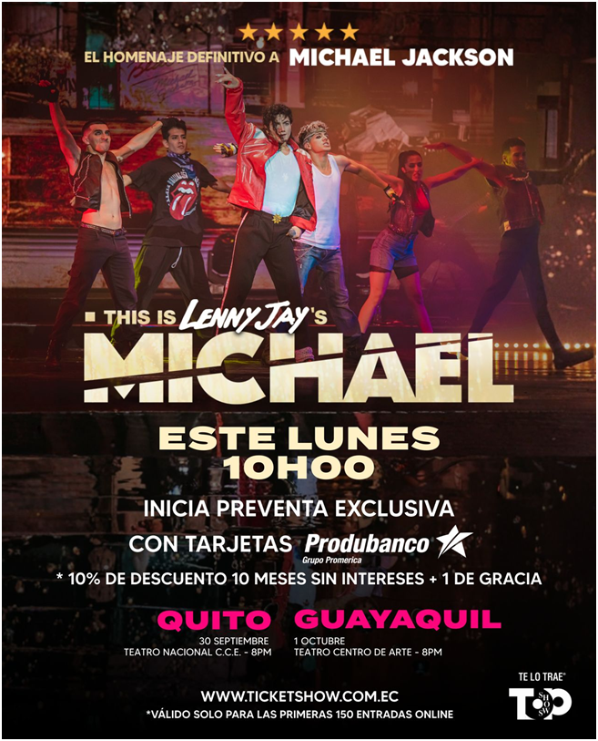 Este espectáculo invita al público ecuatoriano a vivir una experiencia única, llena de nostalgia, emoción y música en vivo. Hay artistas que hacen historia… y hay leyendas que nunca dejan de brillar. La oportunidad perfecta para que los fans revivan la magia del Rey del Pop sobre el escenario.