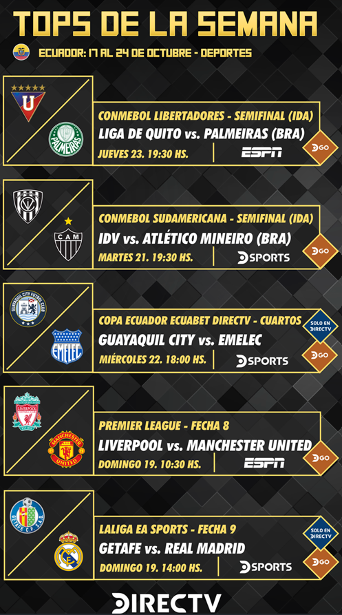 Programación deportiva DIRECTV Ecuador- 17 al 24 de octubre