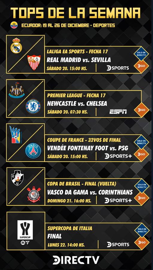Programación deportiva DIRECTV Ecuador- 19 al 26 de diciembre