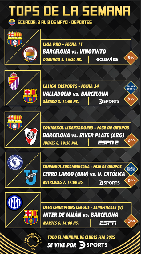 14:00. LaLiga EA Sports – Fecha 34. Valladolid vs. Barcelona por DSPORTS 610 / 1610 HD y DGO