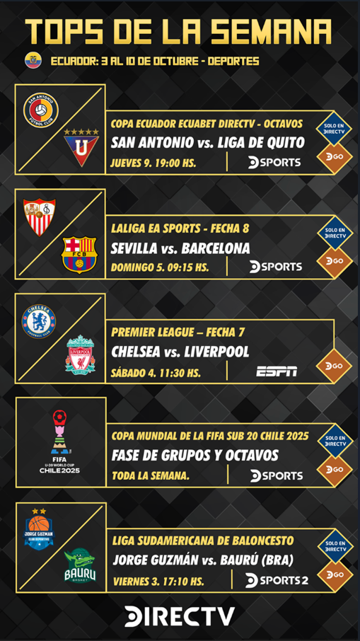 Programación deportiva DIRECTV Ecuador- 3 al 10 de octubre