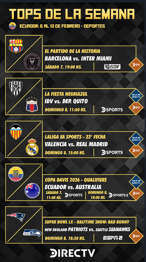 • Programación deportiva DIRECTV Ecuador- 6 al 13 de febrero