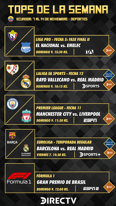 Programación deportiva DIRECTV Ecuador- 7 al 14 de noviembre