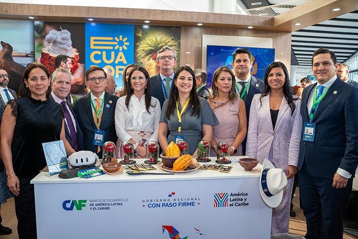 Pie de foto: Nuestra delegación en el pabellón Ecuador, durante el Foro Económico Internacional América Latina y el Caribe