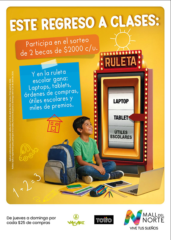 Mall del Norte se prepara para el inicio de la temporada escolar e invita a sus clientes a alistarse para el nuevo ciclo académico con su promoción de Regreso a Clases. Esta actividad busca incentivar a la comunidad y brindar un apoyo directo a las familias a través de premios tecnológicos y becas estudiantiles.