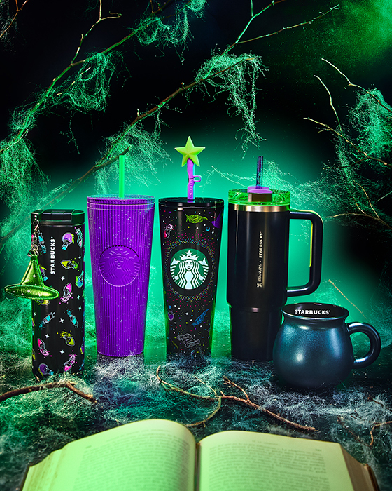 La colección de Starbucks™ Halloween incluye vasos, tazas y accesorios de edición limitada con detalles que brillan en la oscuridad, ilustraciones místicas y acabados texturizados diseñados para destacar tanto de día como de noche.
