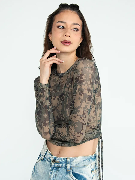 Por eso, la colección propone siluetas oversized, hoodies con carácter, camisetas gráficas de alto impacto visual y pantalones cargo que combinan funcionalidad y estilo. Los parches bordados refuerzan el lenguaje street, mientras que los detalles como rhinestones y taches aportan contraste y personalidad, especialmente en la línea femenina, donde el camuflaje y los destellos metalizados equilibran fuerza y brillo urbano.