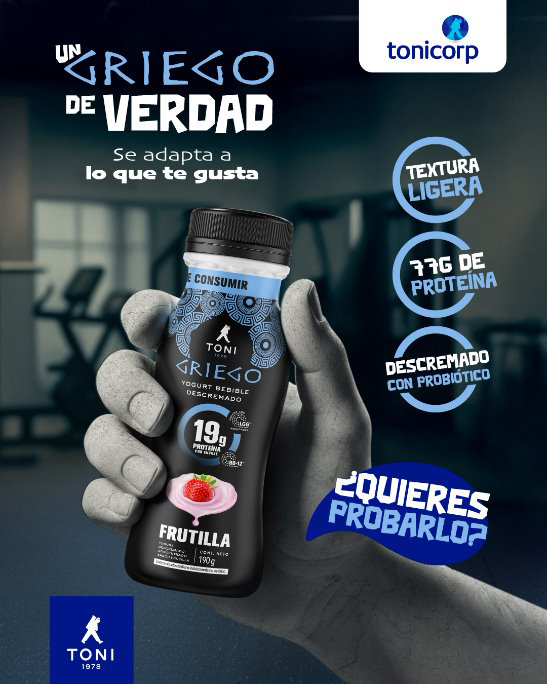 Disponible en sabores frutilla y natural, el nuevo Yogurt TONI Griego Bebible descremado está pensado para quienes buscan una opción alta en proteína, deliciosa y saludable que se adapte a su ritmo de vida activo. Su alto contenido proteico y la incorporación de las cepas Lactobacillus rhamnosus GG (LGG) y Bifidobacterium BB12 lo convierten en un aliado ideal para fortalecer el sistema inmune y mantener el equilibrio digestivo.