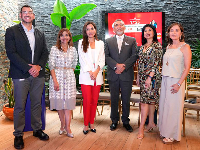 Pie de foto: Carlos de la Torre, director General de Tonicorp; Alexandra Bajaña, directora de Vinculación de la Carrera de Nutrición de la UCSG; Sofía Sierra, Gerente de Comunicación y Sostenibilidad Arca Continental; José Jouvin, decano de la Facultad de Ciencias de la Salud de la UCSG; Martha Celi, directora de la Carrera de Nutrición de la UCSG; y, Martha Ríos, experta en Nutrición.