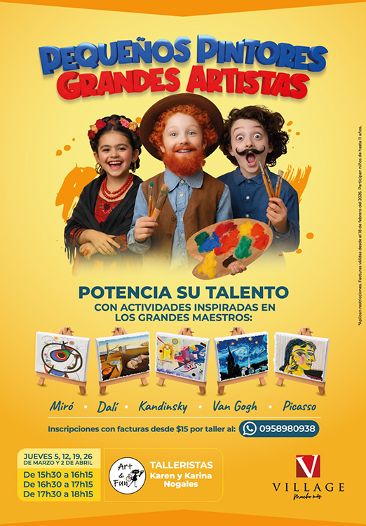 Por el mes de marzo, Village presenta “Pequeños Pintores, Grandes Artistas”, un taller infantil que busca potenciar la creatividad de los pequeños a través del arte, en un ambiente lúdico y cercano.